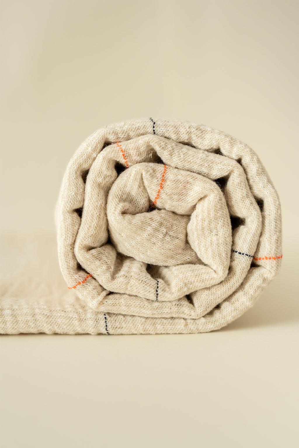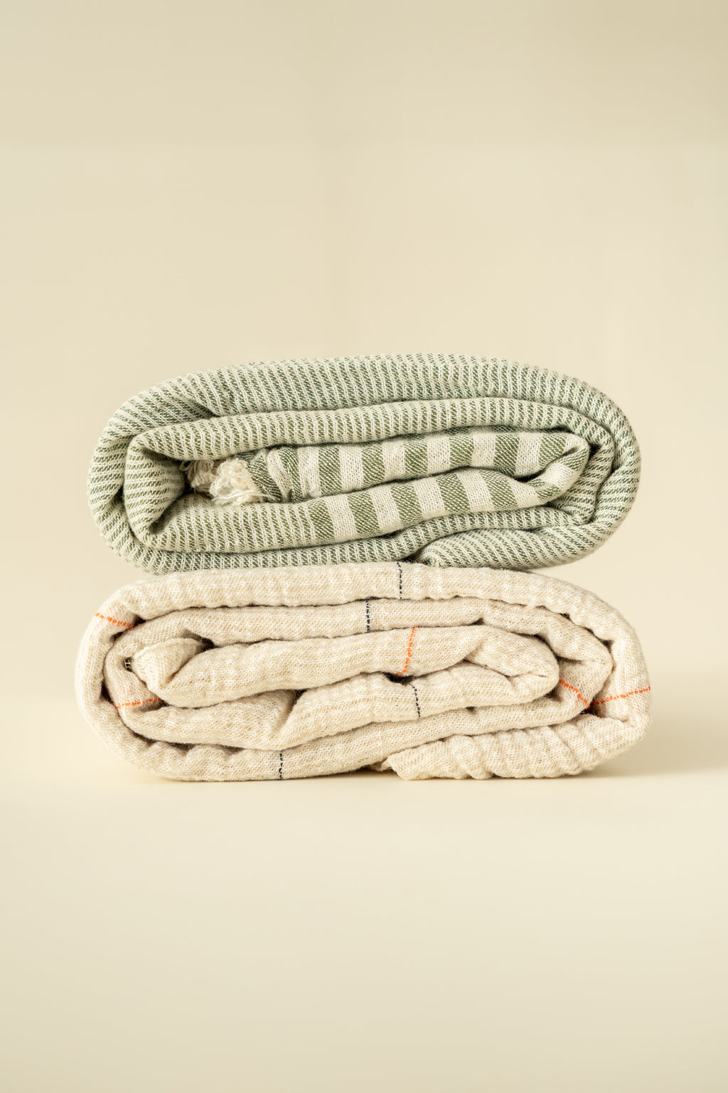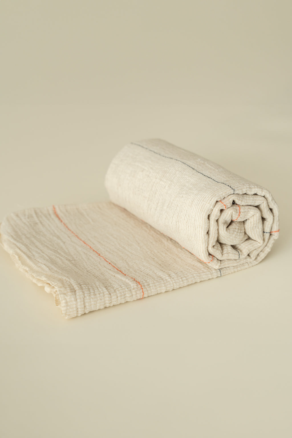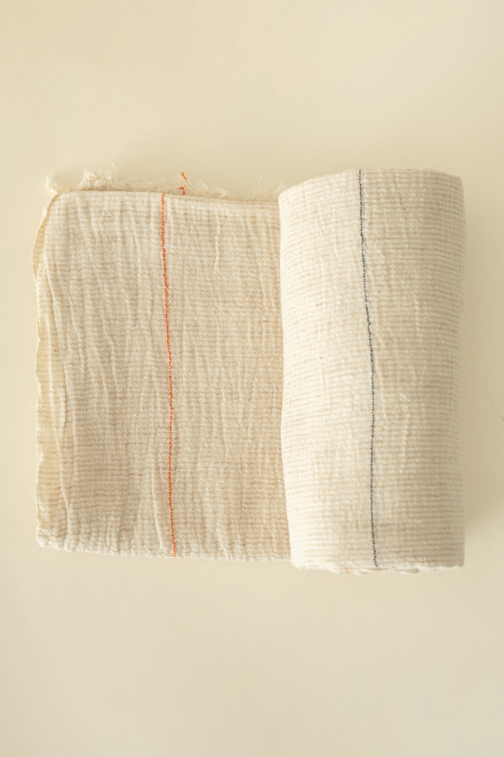 Soft linen-cotton with a relaxed drape and subtle structure.