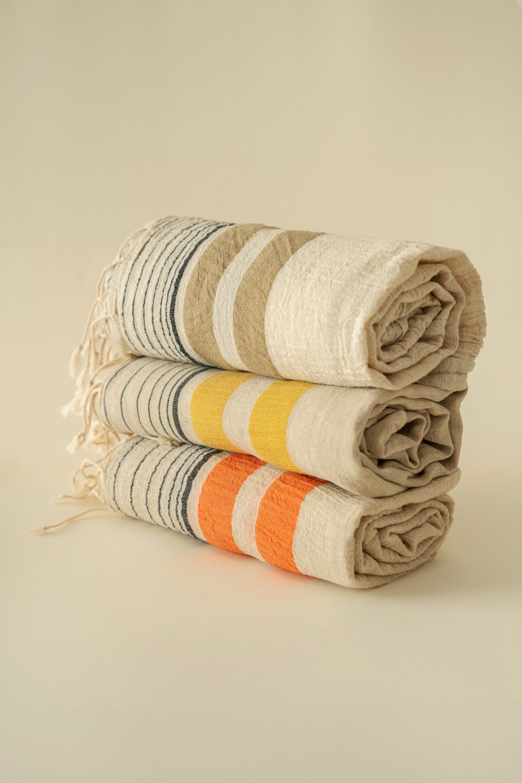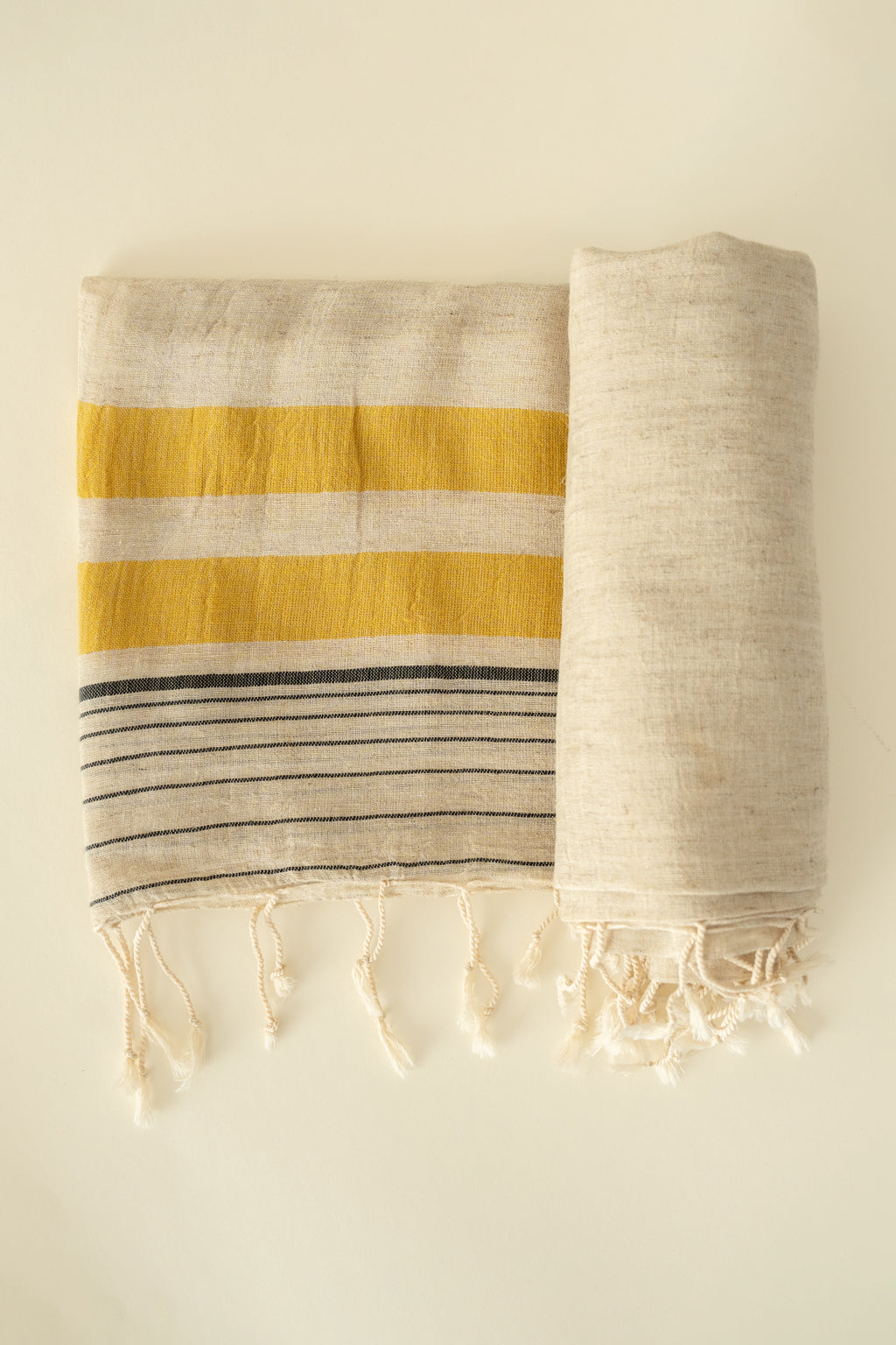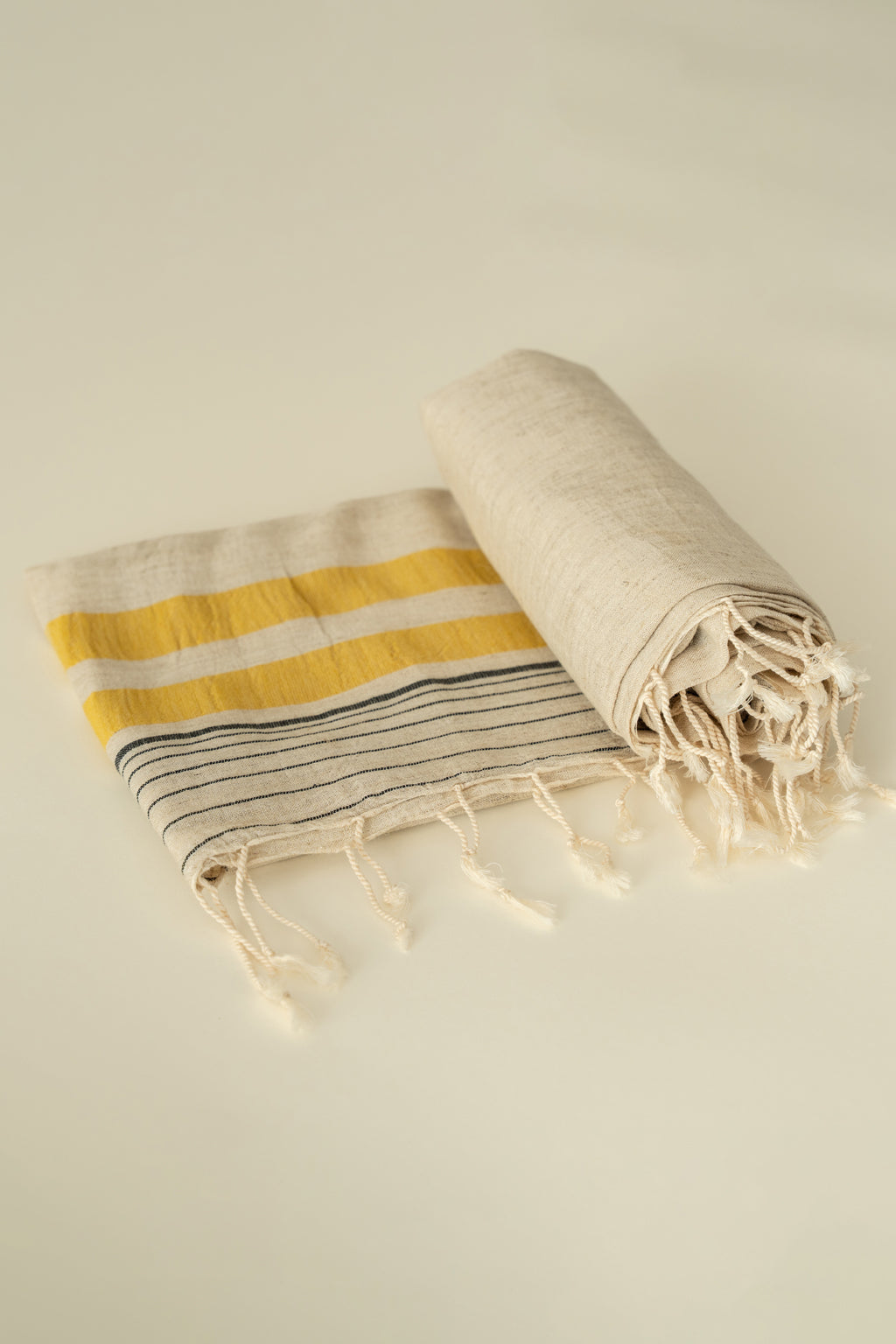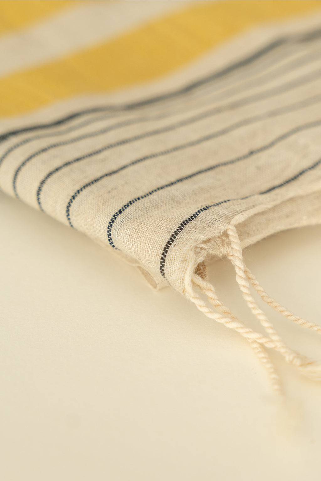Defined by its linen-cotton structure and warm saffron hue, this piece adds a subtle texture and an elevated yet relaxed look.